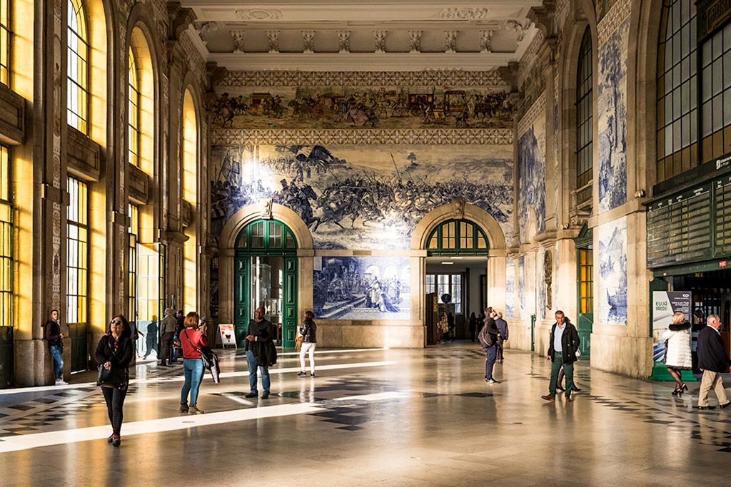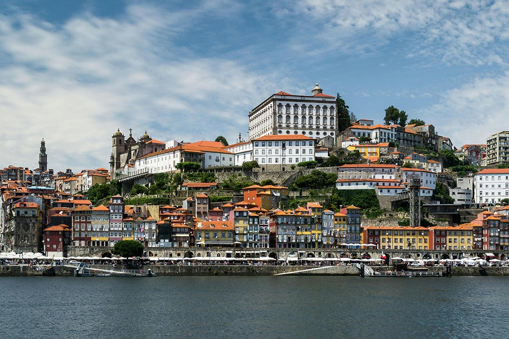 Ribeira’s Unesco colorful riverfront, cobbled streets, centuries-old port cellars, Douro River bridges, azulejo churches, and Portugal's artistic soul displayed proudly.